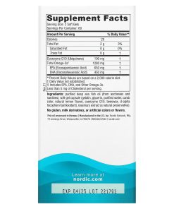 Purified deep sea fish oil (from anchovies and sardines), soft gel capsule (gelatin, glycerin, purified water, carob color, natural lemon flavor), coenzyme Q10, beeswax, d-alpha tocopherol (antioxidant), rosemary extract (a natural preservative).