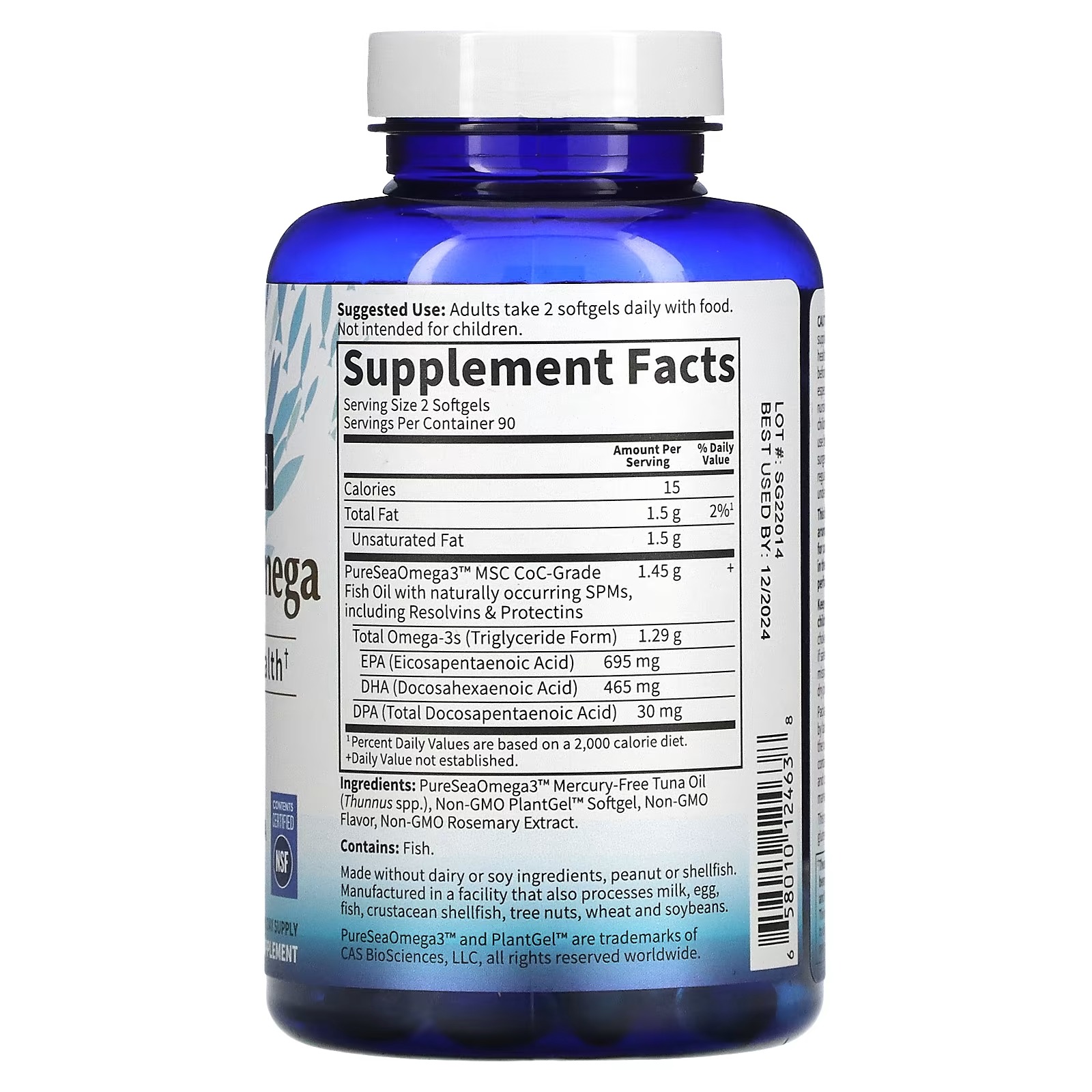 PureSeaOmega3™ mercury-free tuna oil (thunnus spp.), non-GMO plantgel™ softgel, non-GMO flavor, non-GMO rosemary extract.