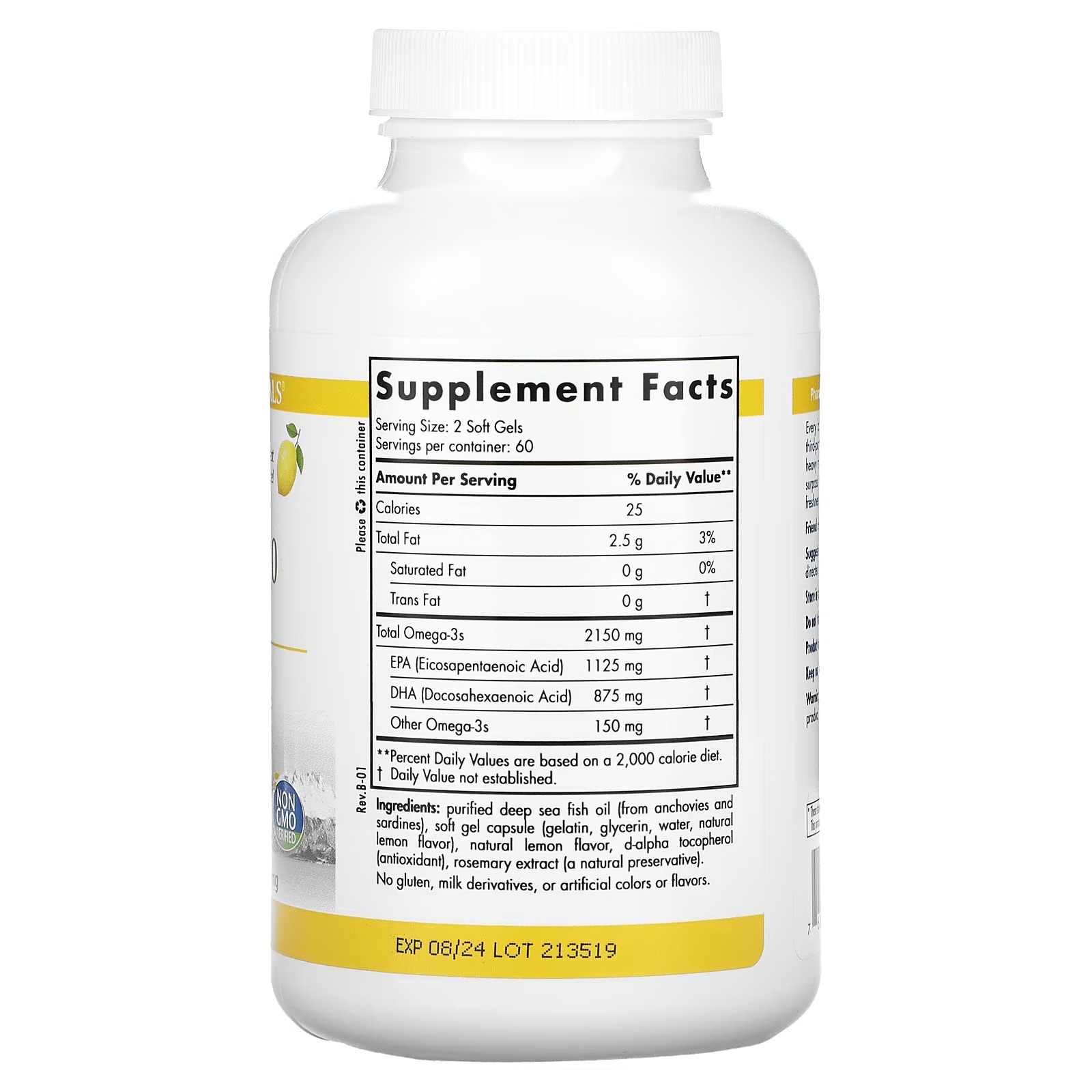 Purified deep sea fish oil (from anchovies and sardines), soft gel capsule (gelatin, glycerin, water, natural lemon flavor), natural lemon flavor, d-alpha tocopherol, rosemary extract (a natural preservative).