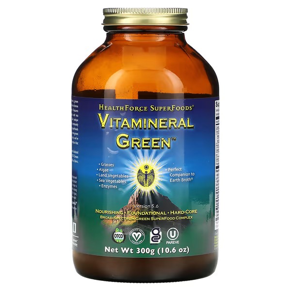 Vitamineral Green™ is an extremely potent, hard-core, green superfood complex, combining the most nutrient-dense superfoods on the planet in an easy-to-use powder. Features alkalizing grasses and grass juices, freshwater algae, and sea vegetables abundant in iodine and trace minerals. Our unique formula offers a diverse blend of plant foods not commonly found in our modern diet. By including bio-diverse superfoods like nettles, horsetail, and moringa leaf, as well as non-green powerhouse superfoods like amla berry and ginger root, we’ve created a broad-spectrum, bio-nutritive superfood complex that is truly one of a kind.