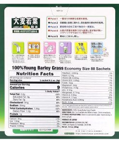 100% Young Barley Grass is delicious and easy to drink. The flavor is similar to matcha tea. It is produced 100% from young barley leaves washed and dried at a low temperature to keep in nutrients such as amino acids, vitamins and minerals. Our young barley leaves are grown in clean, natural air and are rich in minerals, vitamins and fiber to support your health. Sterilized with pressurized steam, pesticide-tested and additive free.