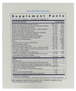 Two-Per-Day Capsules This formula gives you a broad spectrum of the essential vitamins, minerals and other nutrients the body needs. Many multivitamins give you only the average daily dose of vitamins and minerals. Our Two-Per-Day formula beats Centrum® Silver® Adults 50+ in 10 ways, including more of vitamins B1, B3, B6, B12, C, D & E; biotin; selenium; and zinc.