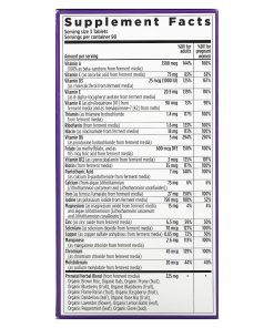 Ferment media (organic soy flour, organic saccharomyces cerevisiae, organic orange peel powder, organic carrot powder, papain [deactivated], bromelain [deactivated], lactic acid bacteria [lactobacillus acidophilus, bifidobacterium bifidum and lactobacillus rhamnosus], organic alfalfa powder and prenatal probiotic combination [lactobacillus casei, lactobacillus plantarum, lactobacillus salivarius, lactobacillus acidophilus, lactobacillus rhamnosus, streptococcus thermophilus, bifidobacterium bifidum, bifidobacterium infantis, bifidobacterium longum and bifidobacterium breve]), organic gum acacia, silica, magnesium stearate, lac resin and carnauba wax.
